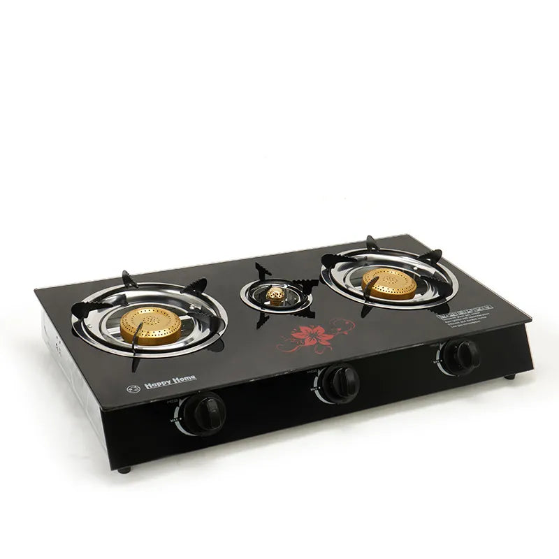 Acasa / Brand At Performance/ Aragaz Portabil cu 3 Arzătoare, AT PERFORMANCE – Aprindere Automată, sticlă temperată cu model variabil, protecție și eficiență energetică Clasa A