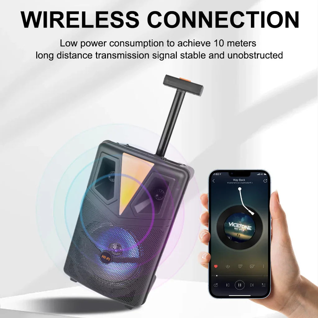 Transformă orice moment într-o petrecere cu boxa portabilă Sing-e ZQS8157, echipată cu difuzor de 8 inch, iluminare LED vibrantă și funcții multimedia complete. Puternică, ușor de transportat și ideală pentru petreceri, karaoke, evenimente sau folosire acasă.