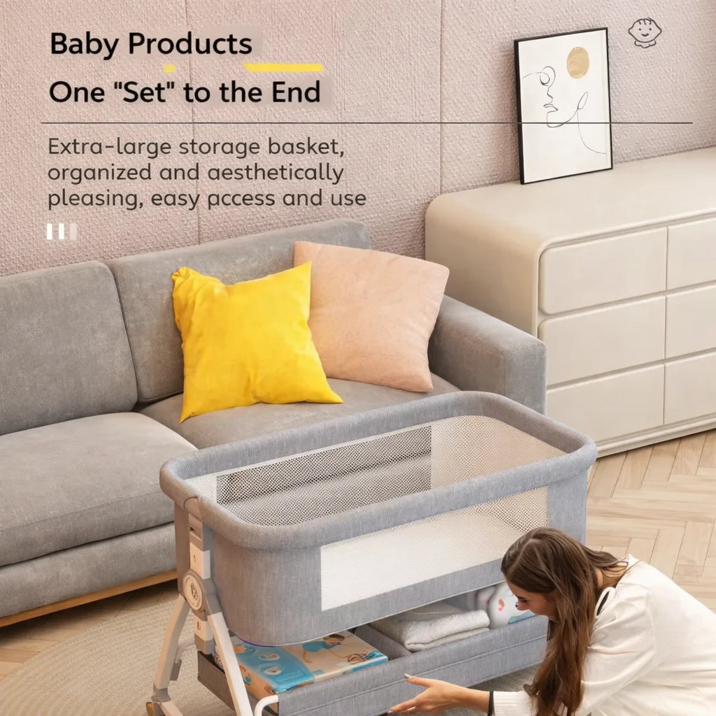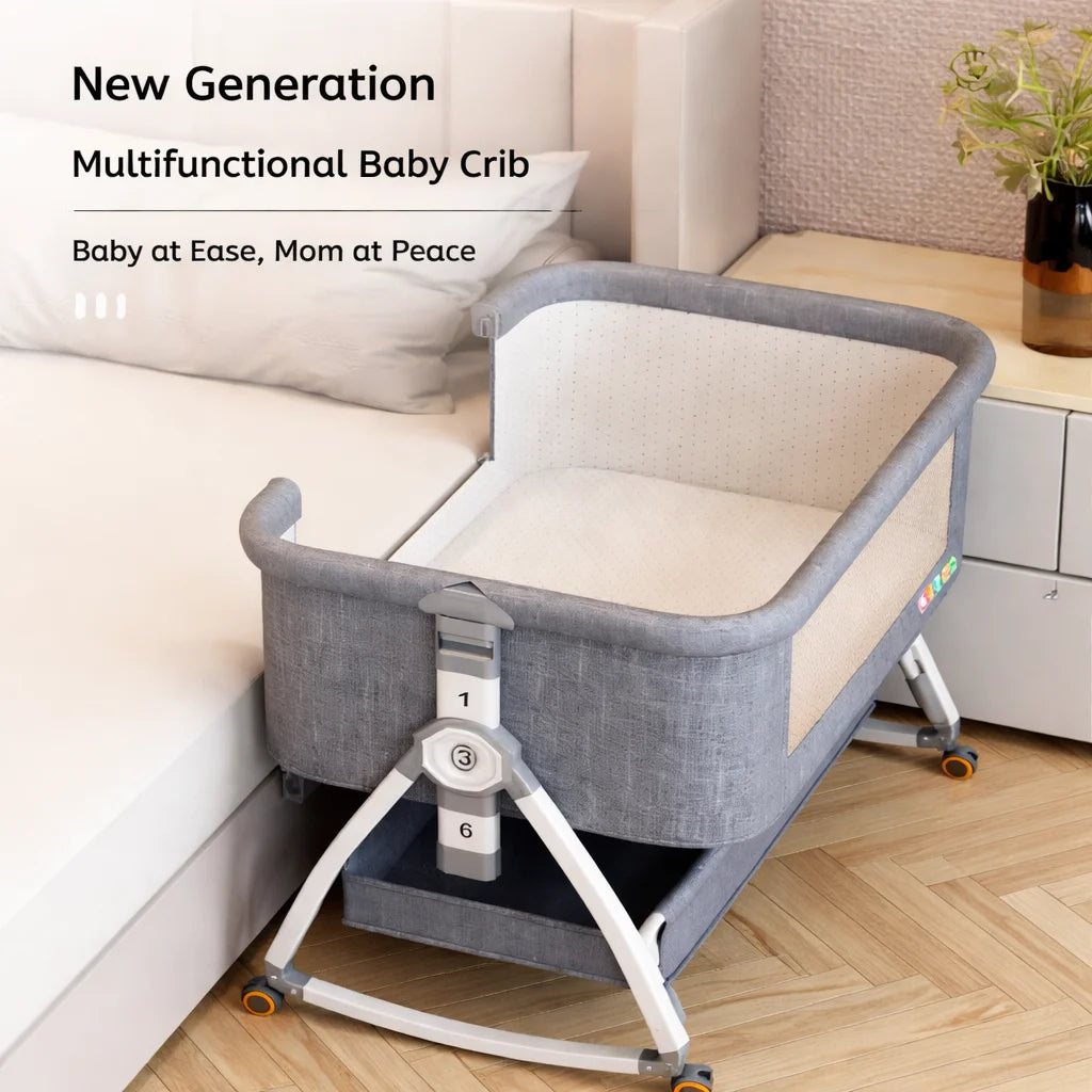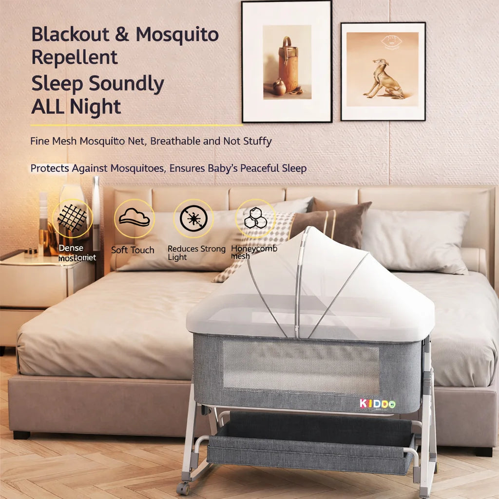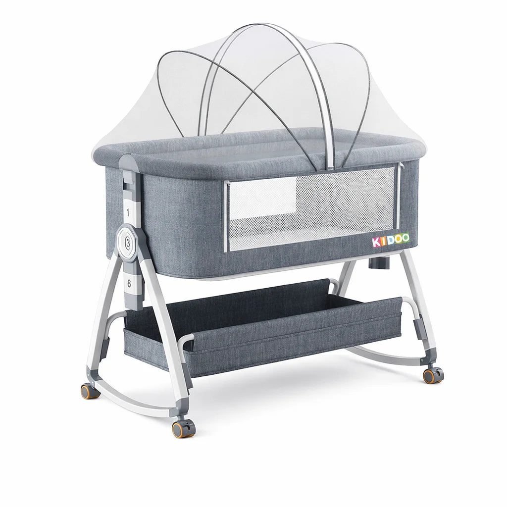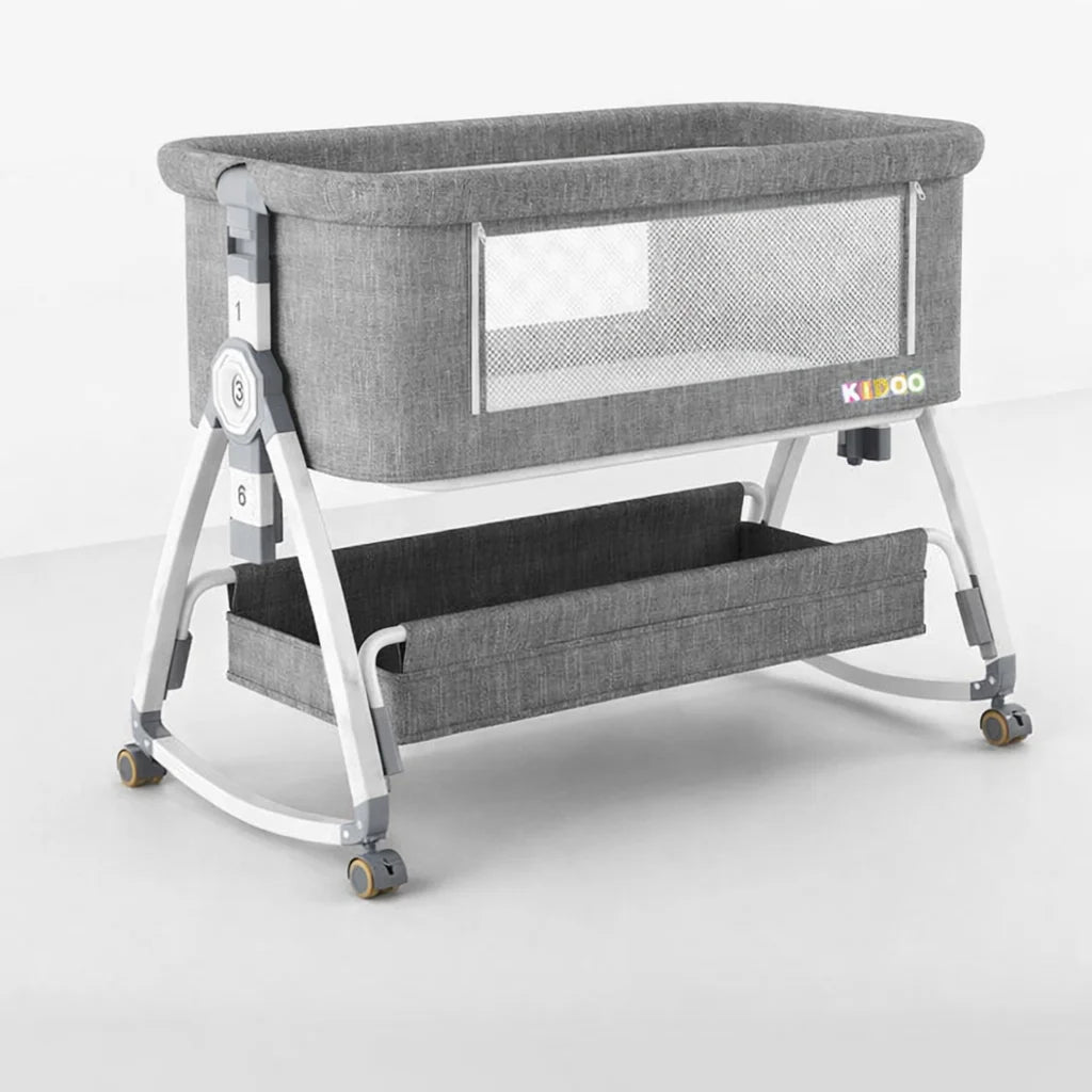 Acasa / Brand At Performance/ Pat portabil pentru bebeluși KIDOO® 3 în 1 cu saltea confortabilă, înălțime reglabilă, roți și pliere ușoară – ideal pentru nou-născuți, gri