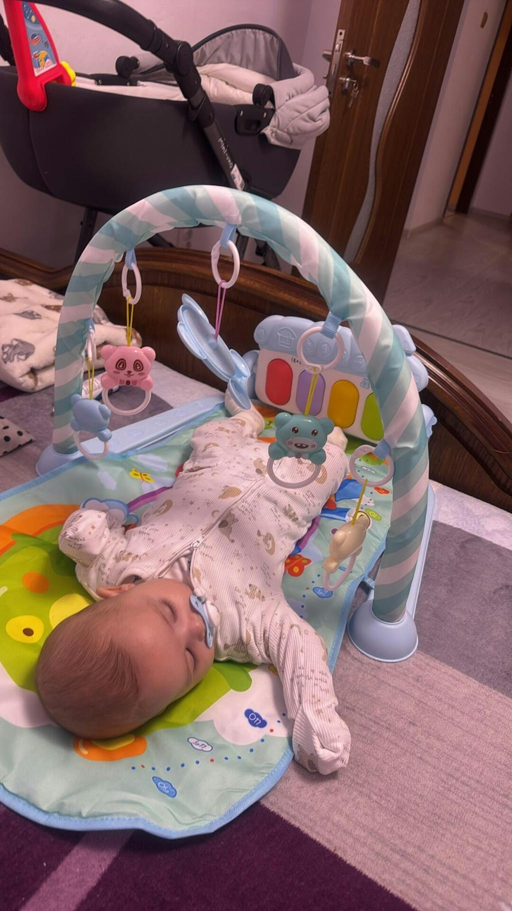 🎹 Pian interactiv – Lovind cu piciorușele clapele pianului, bebelușul își dezvoltă coordonarea și simțul ritmic