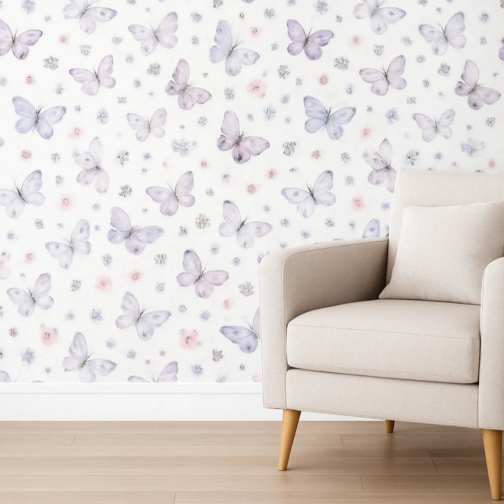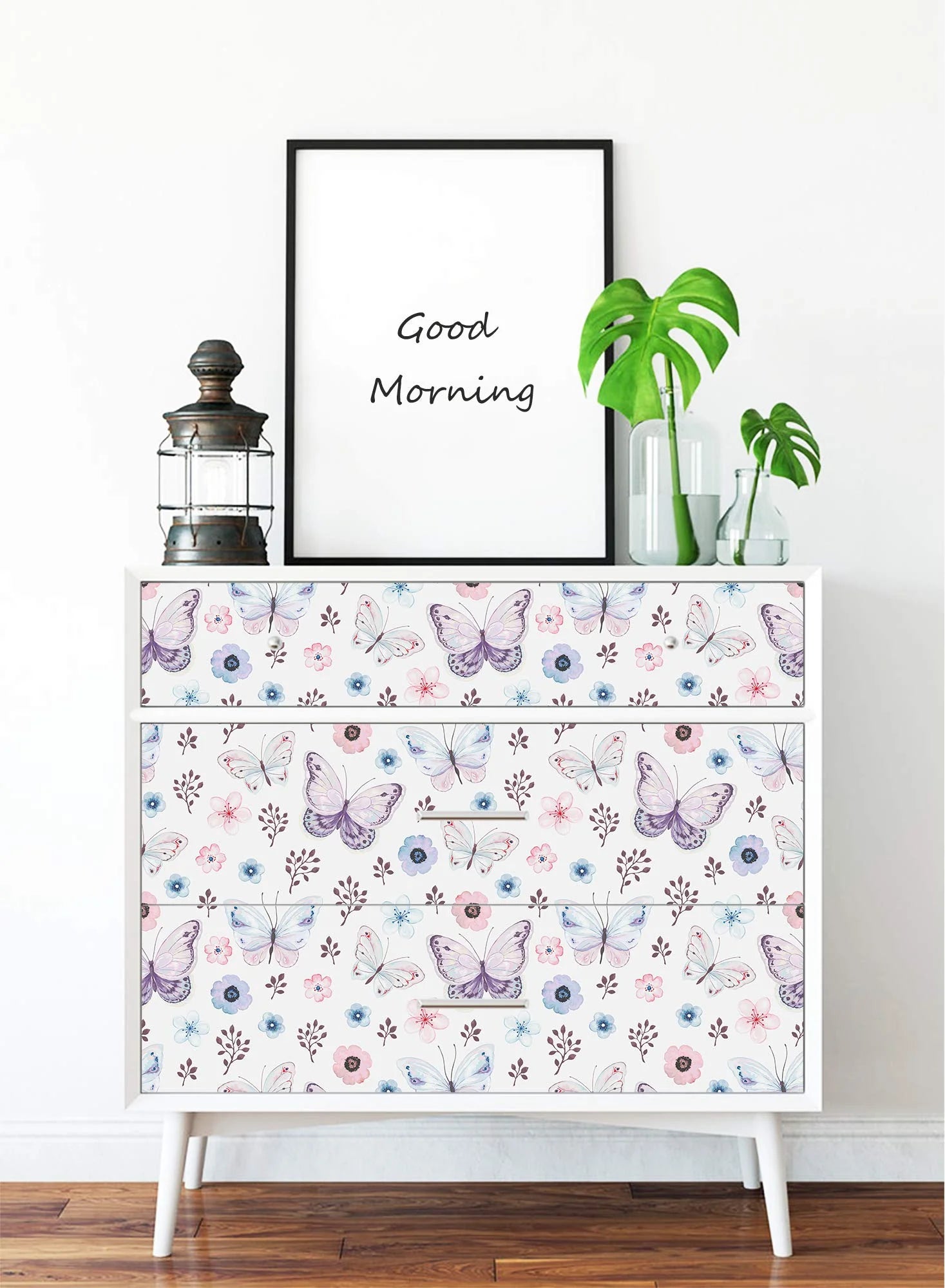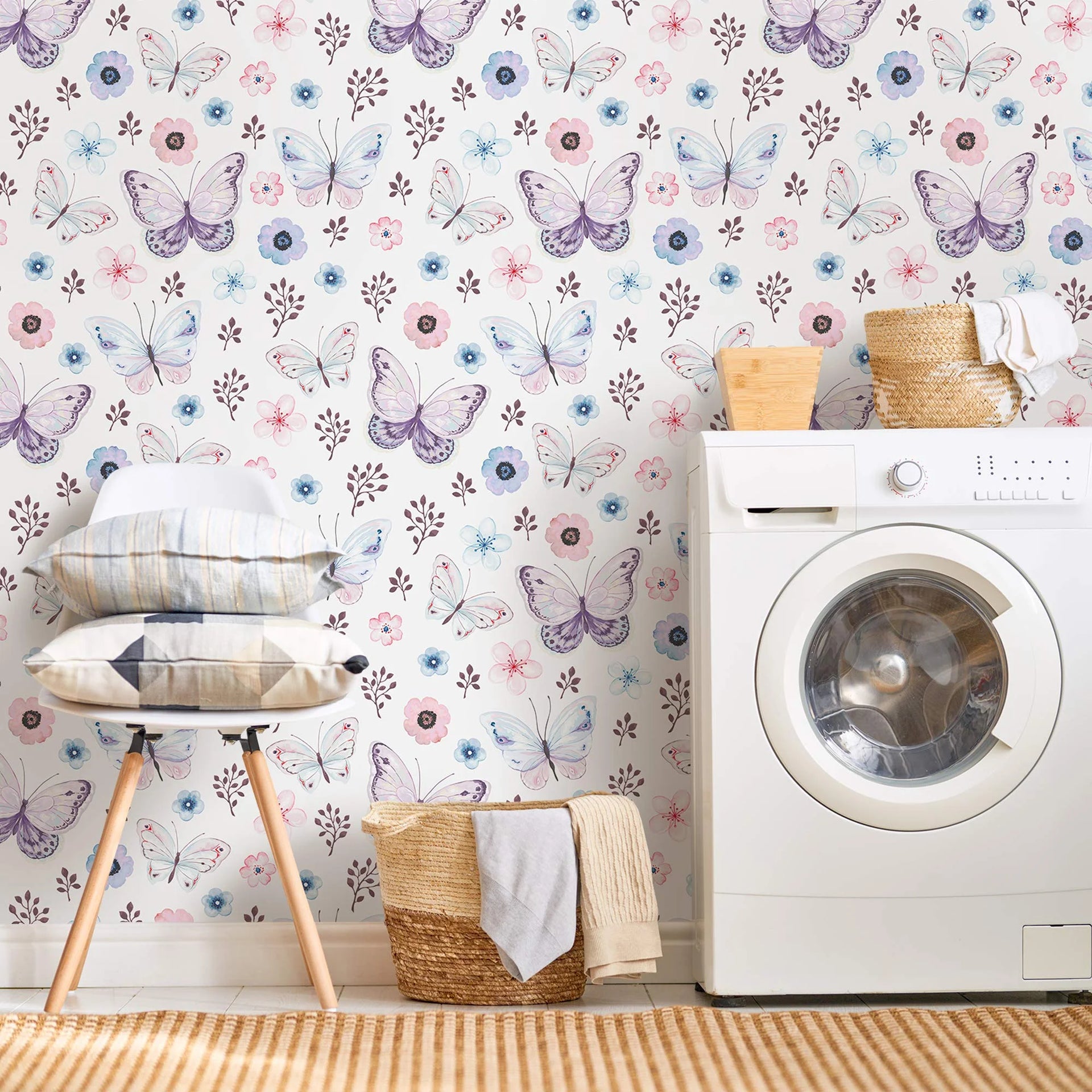 Acasa / Decoratiuni/ Rola Tapet 3D, autoadeziv/autocolant, AT PERFORMANCE®, spuma moale, design modern, pentru interior, usor de curatat, rezistent la apa, 68cmx2.8m, model fluturi, mov/alb