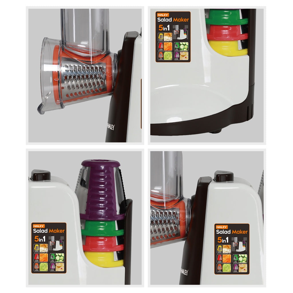 Acasa / Electrocasnice & climatizare/ Aparat de salată electric HALEY HY-1327, 5 în 1, 600W, răzătoare și feliator multifuncțional, lame inox