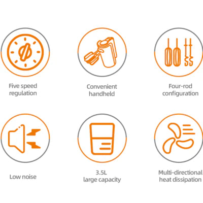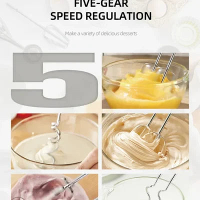 Mixerul de mână Haley HY-1660 este aparatul ideal pentru prepararea rapidă și ușoară a cremelor, spumelor și aluaturilor. Cu un motor de 500W și 5 trepte de viteză, îți oferă control total asupra consistenței dorite, fie că este vorba de mixare ușoară sau de amestecuri mai dense.