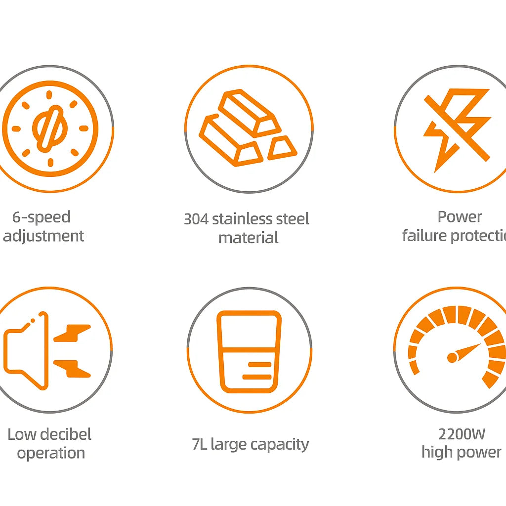 Bol din inox de 7L – durabil, rezistent și suficient de mare pentru cantități mari de ingrediente.