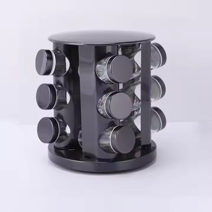 Set 12 recipiente pentru condimente, cu suport, AT PERFORMANCE®, negru