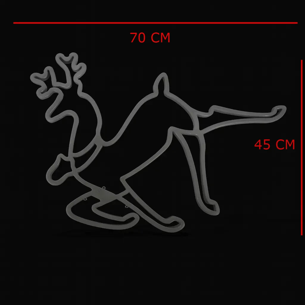 Decoratiune luminoasa Ren de Craciun AT PERFORMANCE®, 2 fete, cu Furtun LED, 57x50x4 cm, Alb cald.