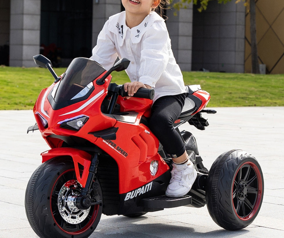 Motocicleta Electrica cu Acumulator pentru Copii AT PERFORMANCE®, cu Melodii si Lumini, 12V, 3 Roti, Mers cu Spatele