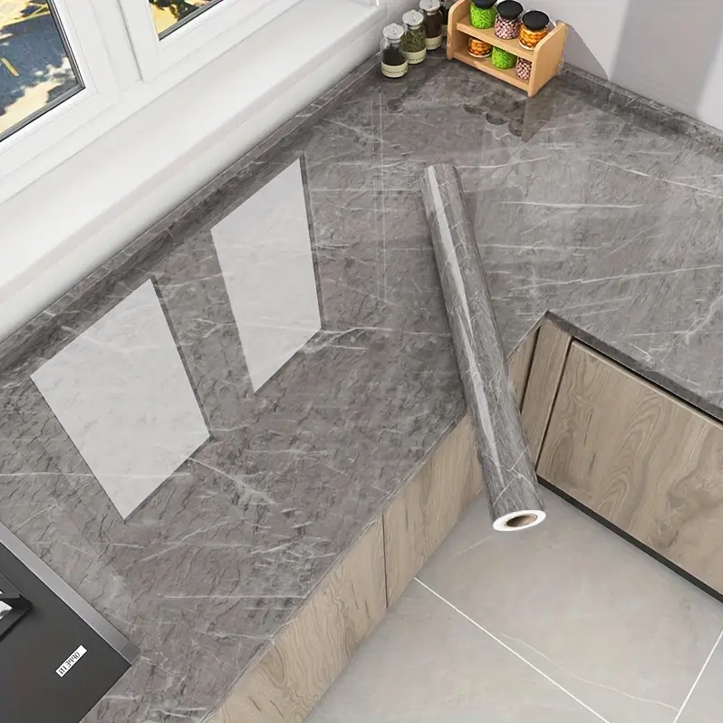 Rola tapet modern, imitatie de marmura At Performance rezistent, la apa, vinil, compact, autoadeziv, 60cmx 300 cm, gri inchis