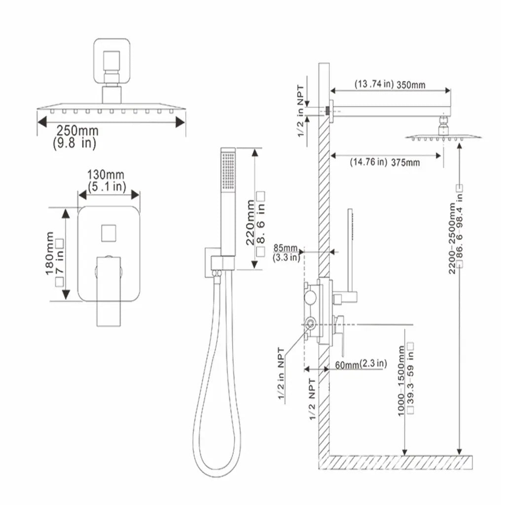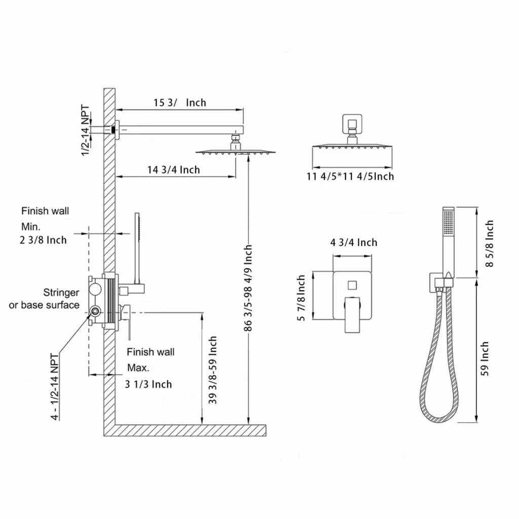 Capul de duș pătrat de 10 inch din oțel inoxidabil 304 oferă un efect tip ploaie amplu și relaxant, acoperind uniform corpul pentru o experiență de tip spa chiar la tine acasă. Para de duș din alamă îți oferă flexibilitate maximă, iar pipa pentru cadă completează perfect funcționalitatea sistemului.